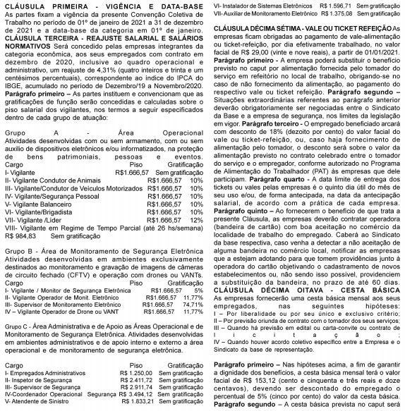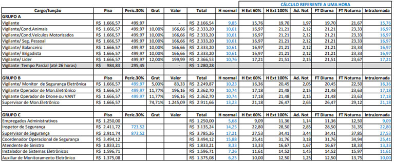 DE CÁLCULOS - CONVENÇÃO COLETIVA 2021 - SEGURANÇA