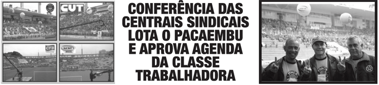 aproximadamente 30 mil sindi-calistas que lotaram o Pacaembu