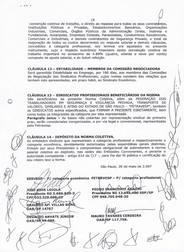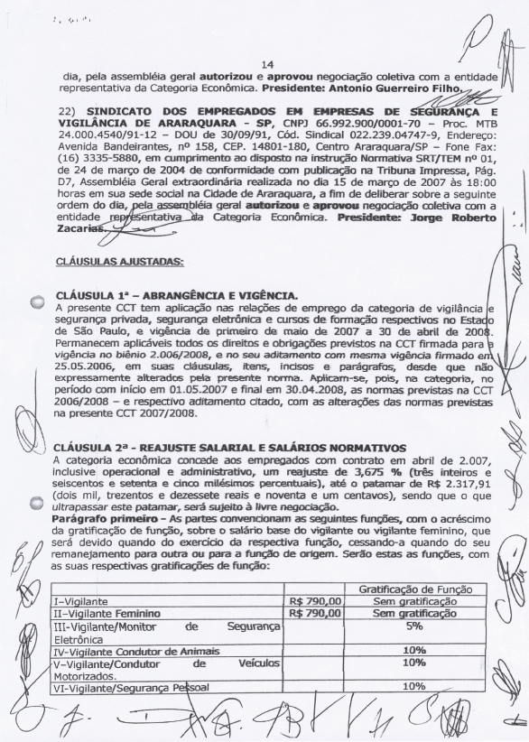Cláusulas Econômicas 01/Maio/2007 à 30/Abril/2008