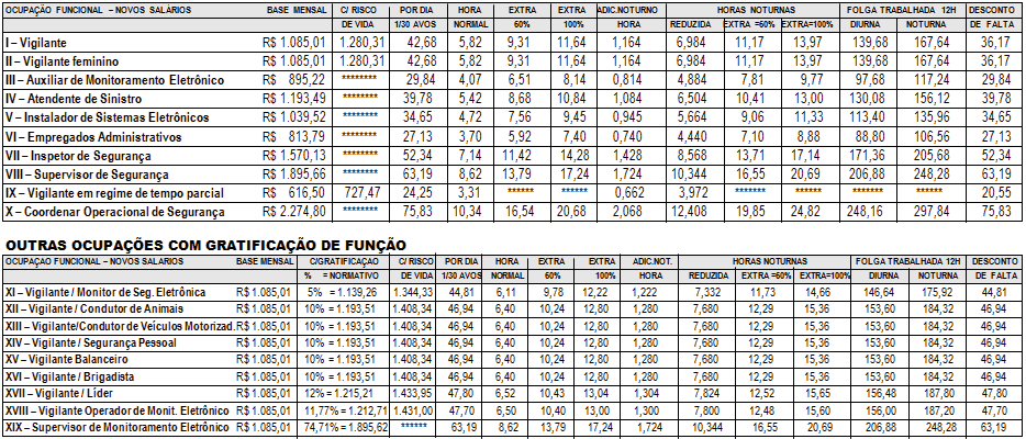 pagamento de uma hora e quinze minutos/dia; das 22:00 às 7:00h,